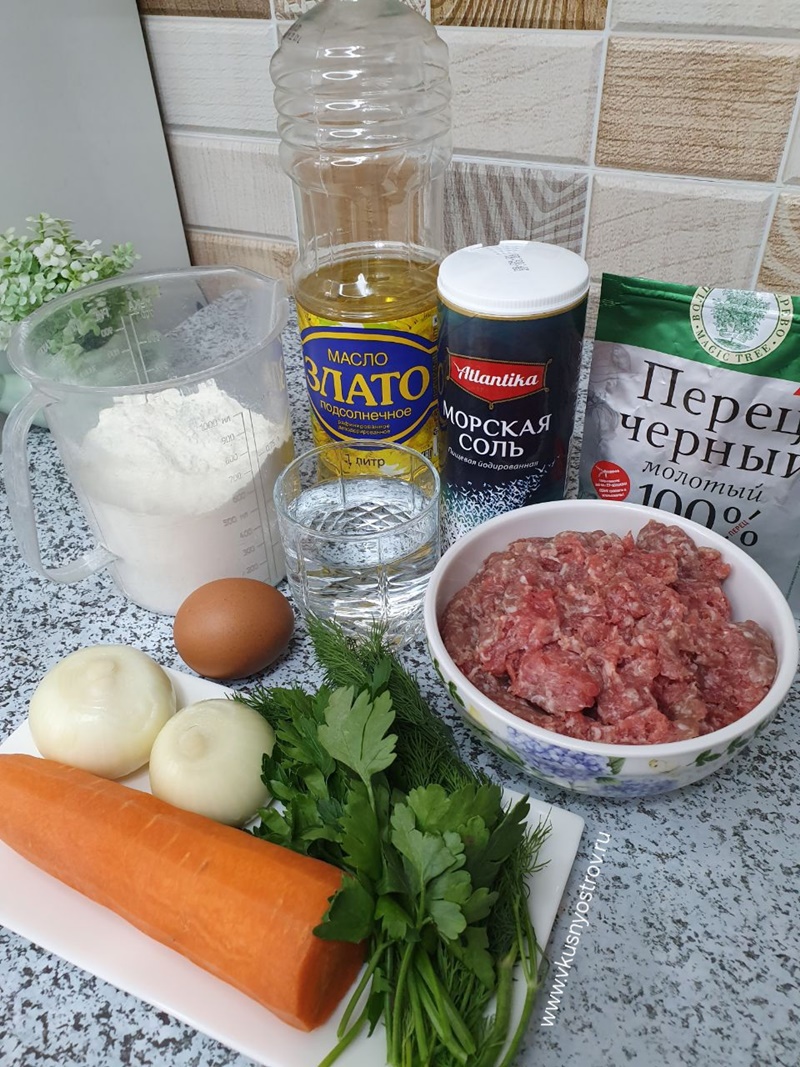 Приготовить начинку. Для этого лук нарезать кубиком, а морковь натереть на тёрке. Обжарить лук и морковь на растительном масле.